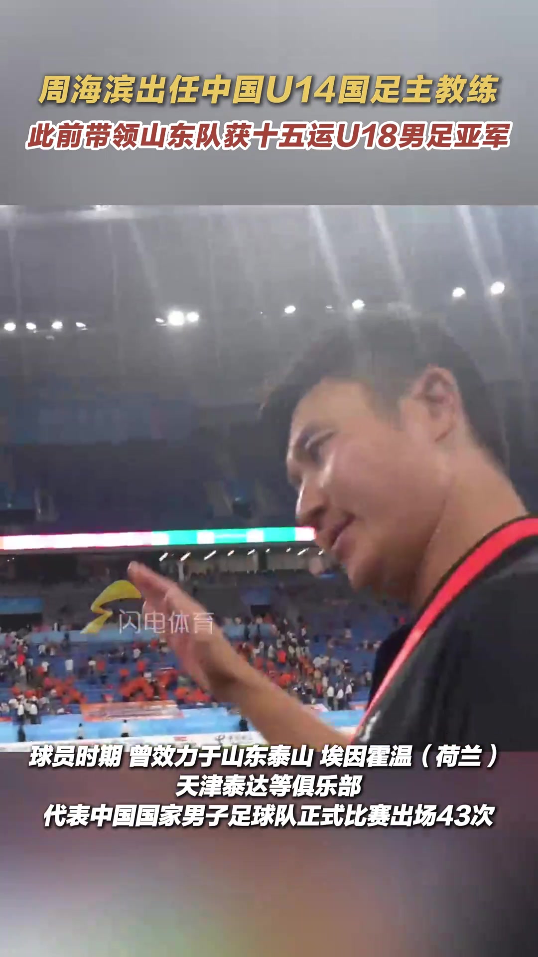 官方:周海滨出任中国U-14国家男子足球队主教练
